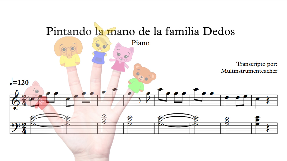 Pintando la mano de la familia Dedos - Partitura para piano