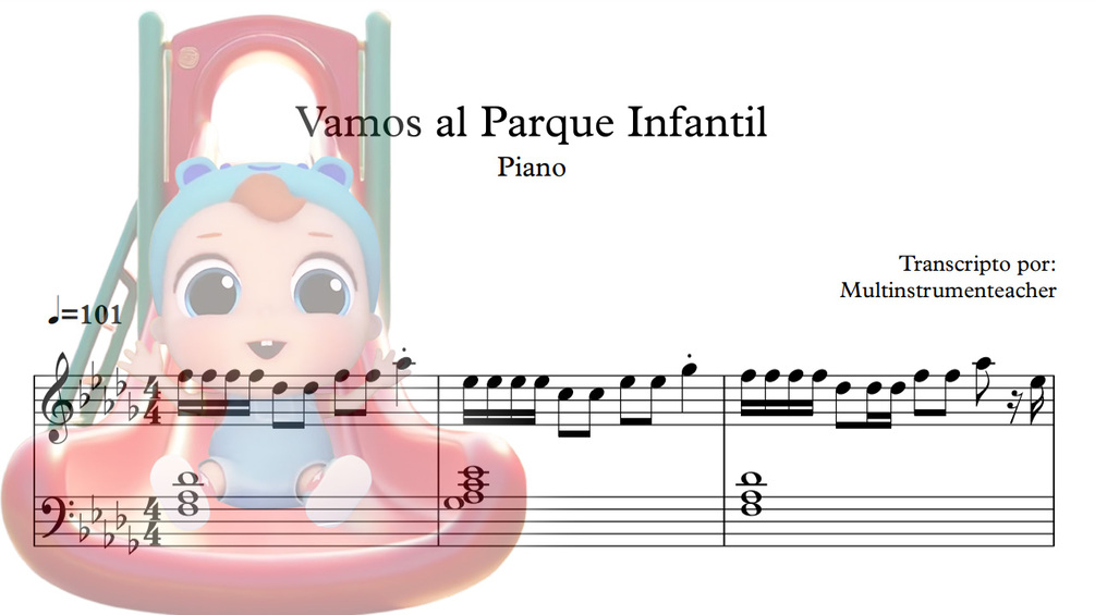 Obtendrás la partitura para piano de la canción "Vamos al parque infantil" de Little Angel en Español, en archivo PDF, sin la marca de agua del dibujo.
