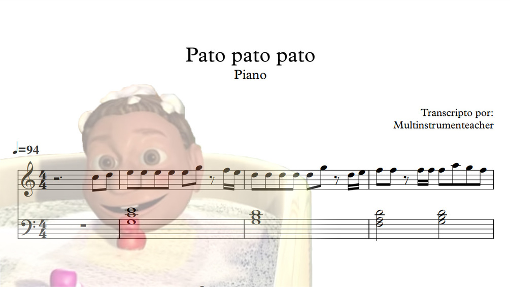 Obtendrás la partitura para piano de la canción "Pato pato pato" de La Granja de Zenón (El Reino Infantil) en archivo PDF, sin la marca de agua del dibujo.