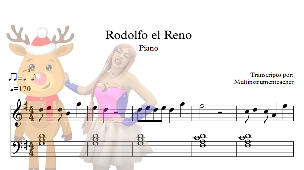 Obtendrás la partitura para piano de la canción "Rodolfo el Reno" de Luli Pampin en archivo PDF, sin la marca de agua del dibujo.