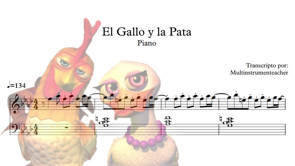 Obtendrás la partitura para piano de la canción "El gallo y la pata" de La Granja de Zenon (El Reino Infantil) en archivo PDF, sin la marca de agua del dibujo.